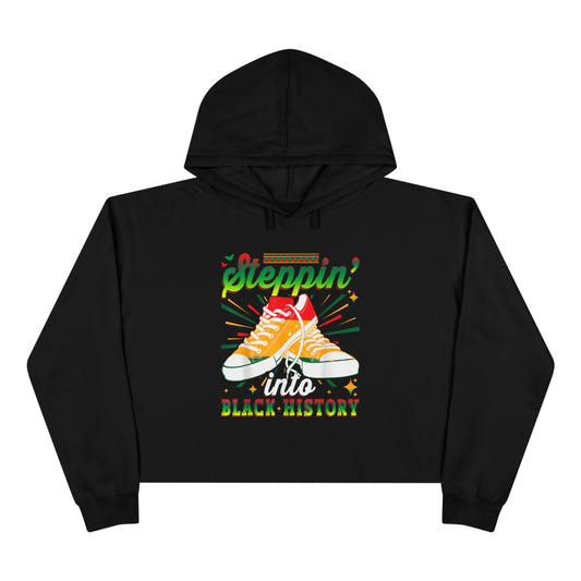Steppin' into Black History Crop Hoodie - Celebratory Sweatshirt for Heritage Month