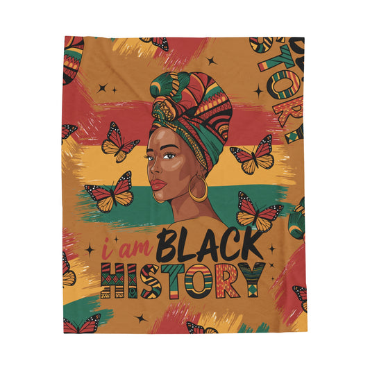 Inspirational Velveteen Plush Blanket - 'I Am Black History' - Cozy Heritage Throw for Celebrations & Everyday Comfort